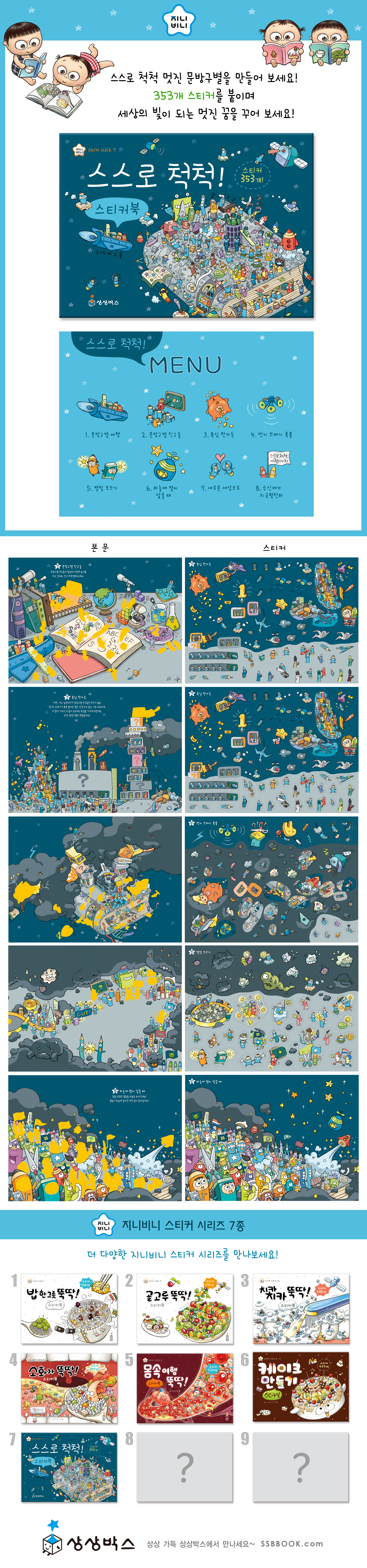 이 책은 이소을 작가의 『지니비니 그림책 시리즈 7, 스스로 척척』의 연관 스티커북입니다. 그림책 속 이야기들을 떠올리며 재미있게 스티커를 붙여보세요. 표정까지 하나하나 살아 있어 더욱더 생생한 캐릭터들은 아이들 최고의 친구가 되어 줄 것입니다.
